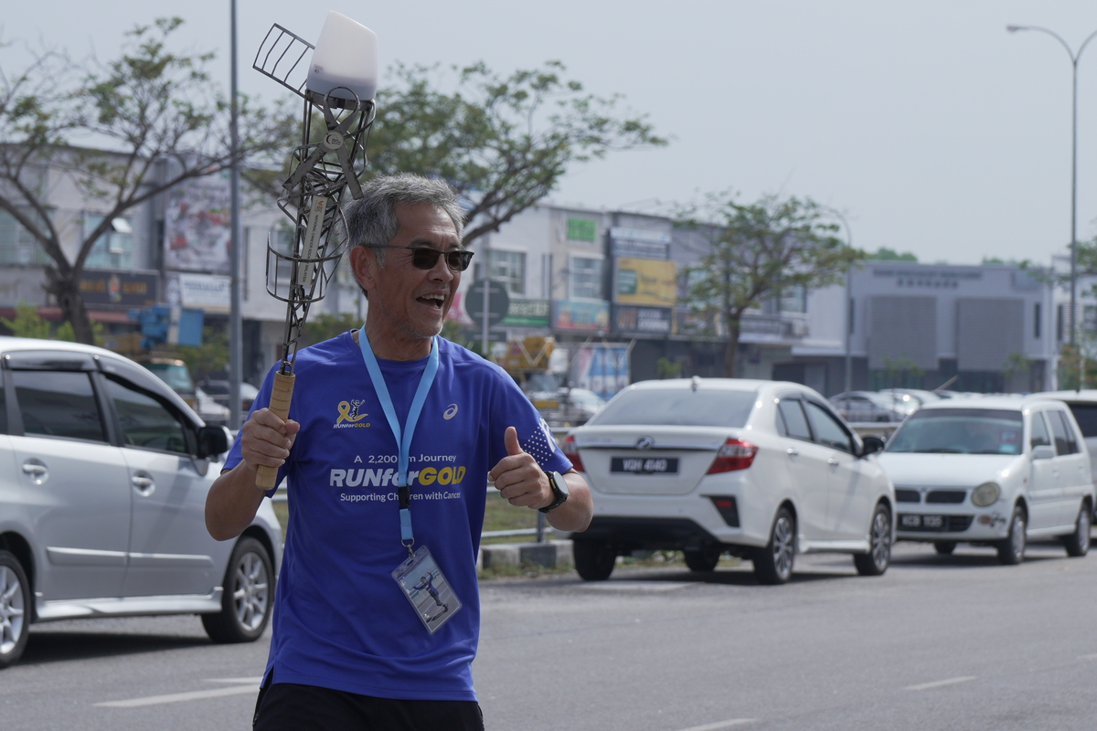 马来西亚癌症意识倡导者兼资深跑者林祥贵(Lim Shyang Guey)在马来西亚国家癌症协会(NCSM)的全力支持下,展开长达2200公里的“奔向金彩”(Run For Gold)长跑壮举。